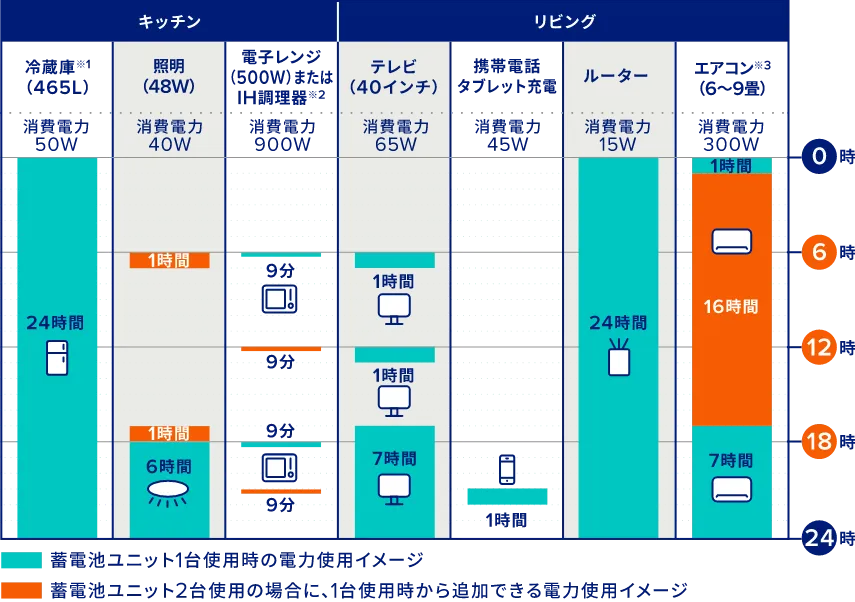 1日に使用可能な電化製品の使用可能時間シミュレーション例