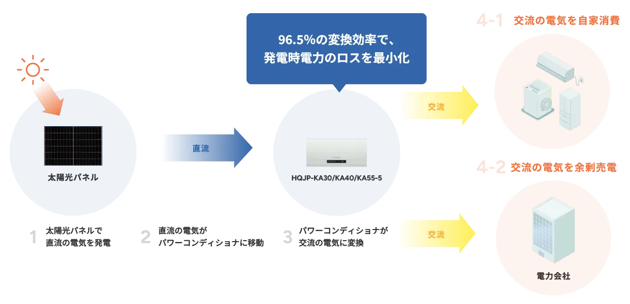 96.5%の高い変換効率により、太陽光パネルから発電した電力のロスを最小化します。