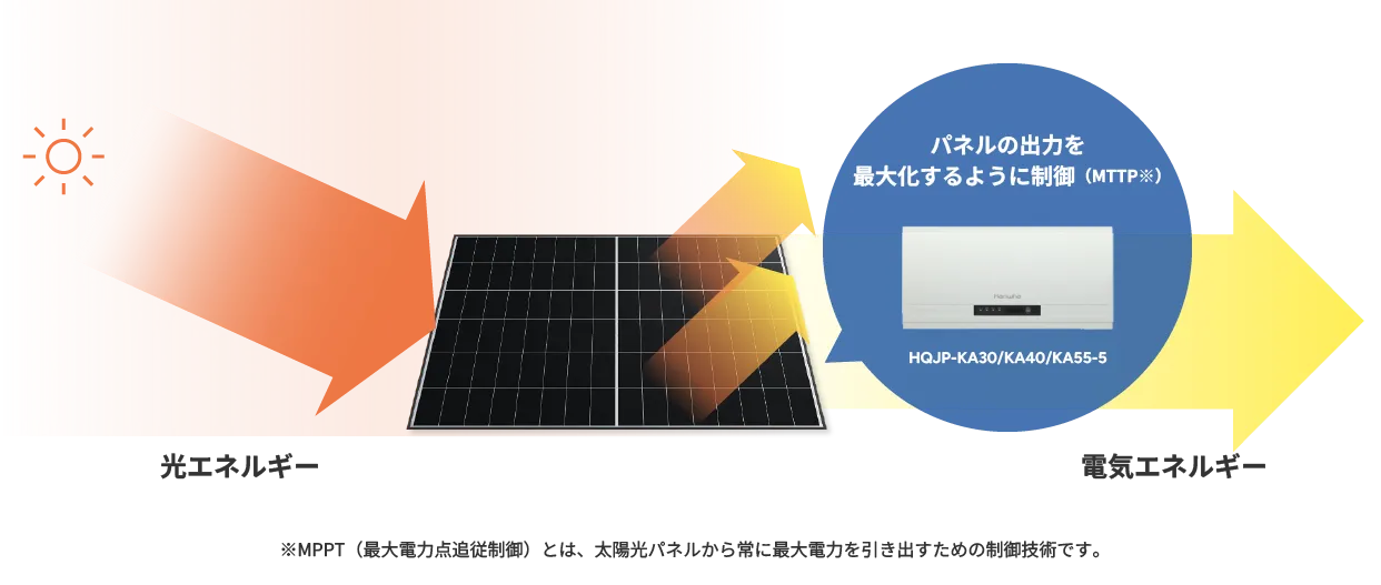 MPPT技術※を採用したパワーコンディショナで、いつも高い出力を維持されるようにします。