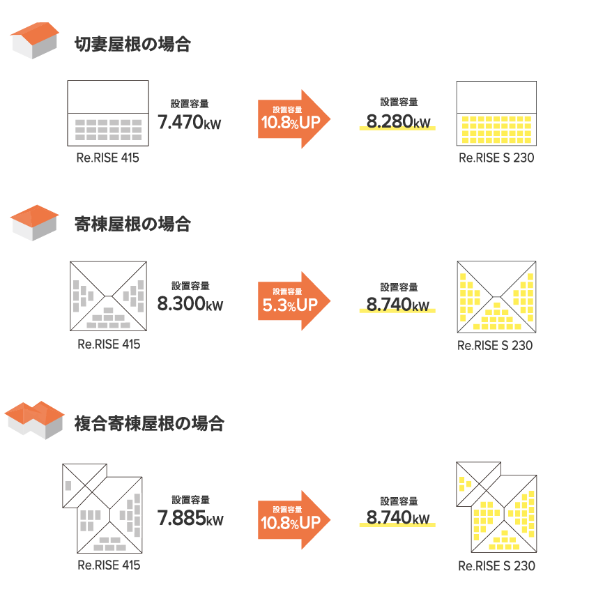 • 同じ面積でもより多く搭載できるため、さらなる高い発電量