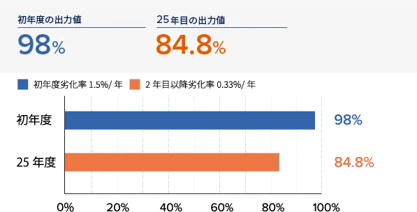 太陽光パネルの出力性能を25年もの長期間保証いたします。