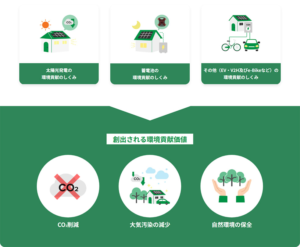 各家庭から集約した環境価値はRE100※を目指す企業など