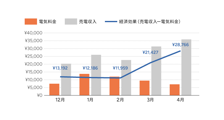 日中はほぼ自家発電でまかなえて、家計にも笑顔が増えました。