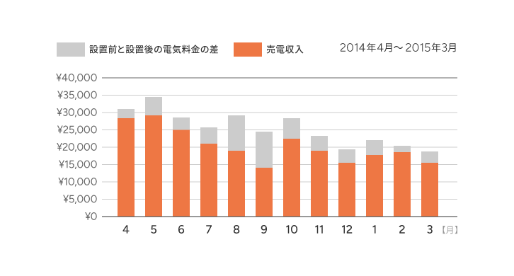 「発電量が良く、電気料金が目に見えて減りましたよ!今では電気代がほとんど気にならないくらい。今までの半分くらいの電気料金になったと思います。」と、I様もご満悦の発電量。グラフからも、電気料金が2分の1近く下がったことが読み取れます。好調な売電により毎月差額が出ており、経済効果も大幅に向上しています。